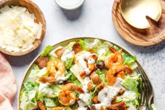 Šios krevetės Cezario salotos yra mūsų atsakymas į „Kas vakarienei? Krevetės iškepa…
